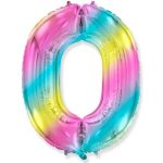 Фольгированная цифра с гелием «0» Радуга, металлик. Испания 40″/102 см