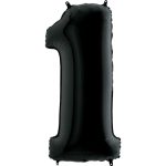 Фольгированная цифра с гелием «1» Черная 41″/102см (Испания)