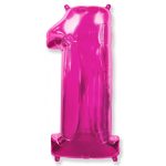 Фольгированная цифра с гелием «1» Фуксия. FlexMetal (Испания) 41″/102см