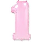 Фольгированная цифра с гелием «1» розовая. FlexMetal (Испания) 41″/102см