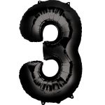 Фольгированная цифра с гелием «3» Черная 41″/102см (Италия)
