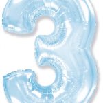 Фольгированная цифра с гелием «3» голубая. FlexMetal (Испания) 41″/102см