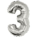 Фольгированная цифра с гелием «3» Серебро. FlexMetal (Испания) 41″/102см