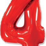 Фольгированная цифра с гелием «4» Красная. FlexMetal (Испания) 41″/102см