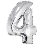 Фольгированная цифра с гелием «4» Серебро. FlexMetal (Испания) 41″/102см
