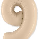 Фольгированная цифра с гелием «9» Кремовый. FlexMetal (Испания) 41″/102см