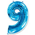 Фольгированная цифра с гелием «9» Синий. FlexMetal (Испания) 41″/102см