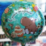 Круг с гелием «С днем Рождения» Бегемот с тортом 18″/45см