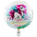 Круг с гелием «С Днем Рождения» Единорог крылатый, 18″/45см