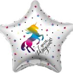 Шар с гелием Звезда, С Днем Рождения! (радужный единорог) 19»/48 см