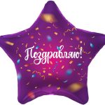 Шар Звезда «Поздравляю» (яркий серпантин) 19″/49 см с гелием
