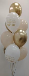 Большие и прочные шары размером 30 см легко поднимаются на гелии и долго сохраняют форму. Композиция подходит для оформления офиса, фотосессий, поздравлений коллег, друзей и близких.