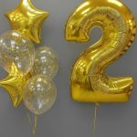 Набор воздушных шаров «Звездный Взлет» — идеальное решение для яркого украшения вашего праздника! В комплект входит большой фольгированный шар в форме цифры «2», два звёздных шара, а также пять прозрачных латексных шаров с золотым конфетти внутри. Такой декор прекрасно подойдет для дня рождения, юбилея или тематической вечеринки.