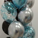 Потрясающий набор воздушных шаров в стильных оттенках серебра, небесно-голубого и черного, дополненный прозрачными шарами с конфетти. Идеально подойдет для мужчины или женщины, украсит вечеринку, корпоратив, день рождения или фотосессию.