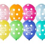 Воздушный шар «С Днем рождения» горошек 14″/36см