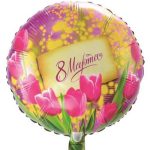 Круг с гелием «8 марта.Тюльпаны и мимозы» 18″/45см
