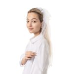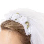 Ободок цветы с фатой, белый, 60см