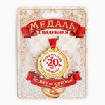 Медаль «20 лет. Фарфоровая свадьба» d4 см