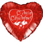 Сердце с гелием «С Днем свадьбы» красное 18″/45см