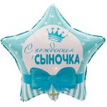 Шар с гелием Звезда «С Рождением сыночка» Звезды 18″/45см