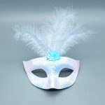 Маска голубая перламутровая с перьями