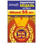 Подарочная медаль на ленте «Юбилей! 55 лет»