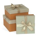 Подарочная коробка, квадрат, С БАНТОМ ТИСНЕНИЕ РОМБ СЛОНОВАЯ КОСТЬ-СЕРЫЙ 190х190х90
