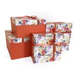 Подарочная коробка, квадрат С БАНТОМ КОЛИБРИ ДЕНЬ, оранжевый 210х210х110