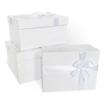 Подарочная коробка, прямоугольник,С БАНТОМ БУМАГА БЕЛЫЙ ГЛЯНЕЦ 210х170х110